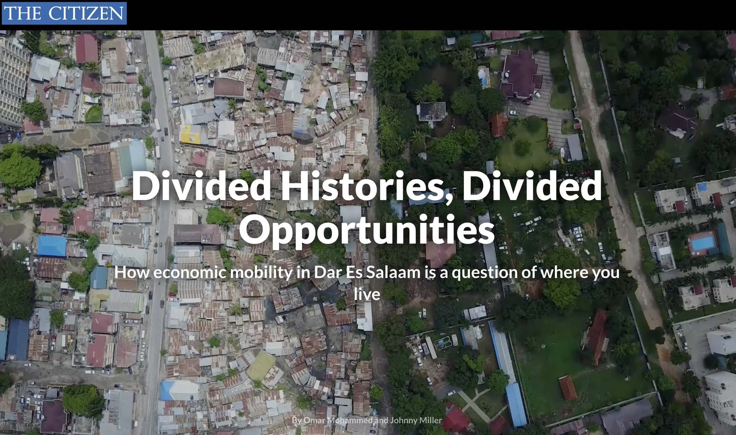 Masaki, the area on the right, is considered to be one of the wealthiest suburbs in Dar es Salaam. A few kilometres away, on the other side of the road is Msasani, a less affluent part of the city. They are, visually at least, a picture of inequality. The image raises a number of questions. We chose to focus on one: Does being born in Masaki afford you a better chance in life than growing up in Msasani?